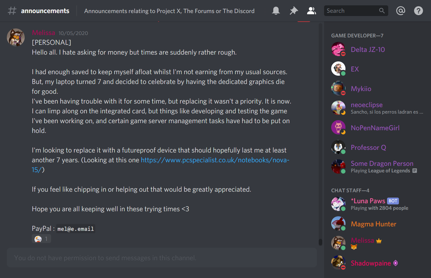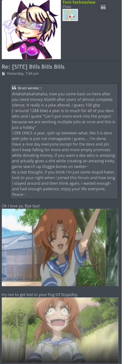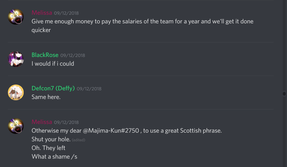 With each word of what you're saying, you demostrate being more stupid in each line you write, I asked for donations, and what, all people who make this kind of thing does, at least I never put a paywall, anyone donates the quantity they wanted and when they wanted, the money we get was for paying the hosts, the domains, and give gifts to the developers, I practically never keep money for MYSELF, I gifted NoPen with a N2DS because she was unable to get it on her country, I gifted a Ps Vita to NeoEclipse because the same situation, I gave money to the other developers or get them Steam games, anyone can ask them and knows is the truth, I have a real job, I don't need money to live, and I always said, ALWAYS, that the donations never will make the development quickly, just cheer the people to keep working hard on it.