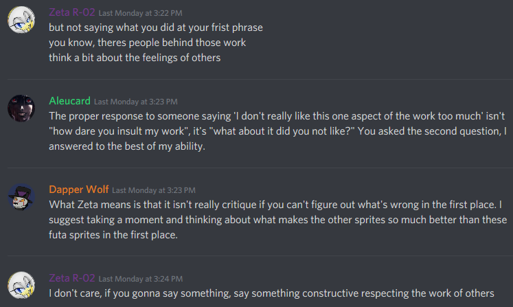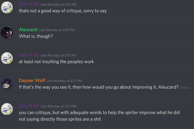 You guys wants all good, pretty, detailed and quick, and that's impossible, the more detailed the animations will be, the more time we will take doing them, teres no equation to make them better and in less time, decide, simple anims and quick, or elaborated ones and slower, indeed we took the second route, because I think is the best for all, and THANKS for your shitty comments of we don't like this fethis, this is weird, this is bad, I LOST several great spriters, and that make me really MAD. Again, I invite the people around who have any doubts of this Project to come to the Project X Server and talk with me directly, just tell the mods in the verification that youre from here and wants to talk with me, and I will do it when I can. Yes, even you, bitch, I'm waiting for you to contact me. Have a good day Zeta