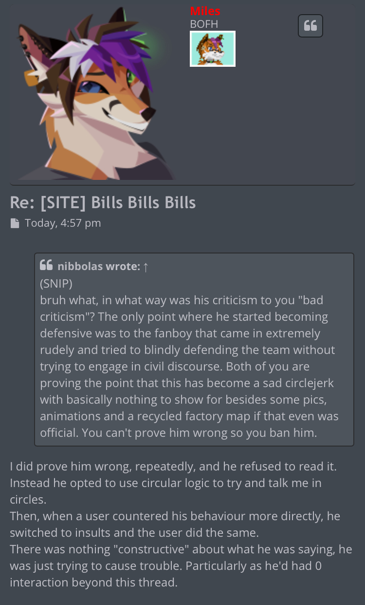 I never banned ANYONE more than the stupid Metro guy on my forums, but I have moderators on them, and if they ban people, it was not my fault, but if they did, I'm pretty sure, they did the correct action, and the times I have to appear in public, is because stupid dumb psychos like you who come and begins to insult all the people, and I have to forcefully appear in public and defend myself and my team from shits like you, also, I'm gonna tell you a secret, I don't read the posts on the forum, I don't have time and I'm not interested.