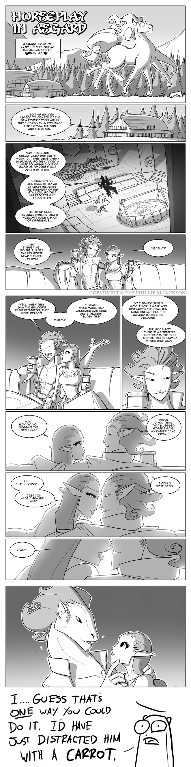 He accuses the leaking sites of "mental gymnastics," so I won't entertain his notions in that field, though it would help if his output didn't fluctuate between "actually hot" and "derivative." It's a bit of a gamble if you're getting a genuinely interesting comic, or a variant of some plot he's done a couple times already.