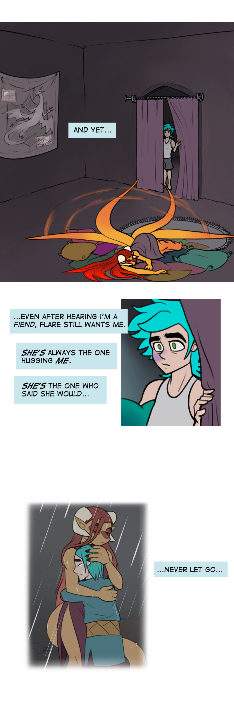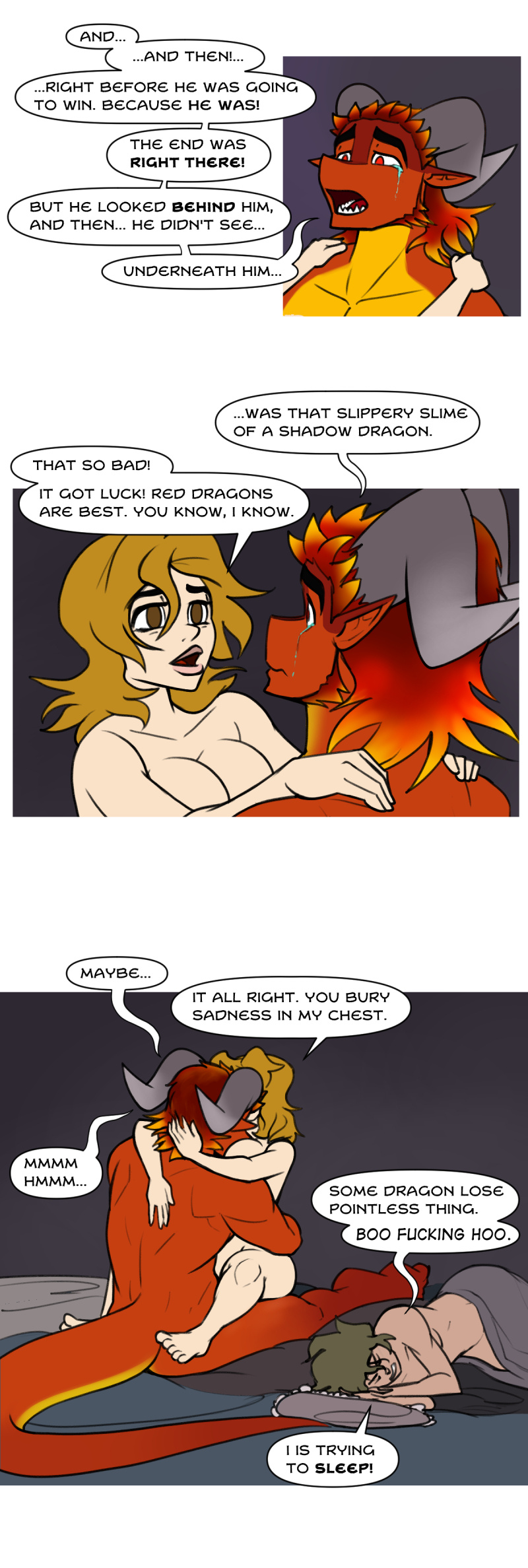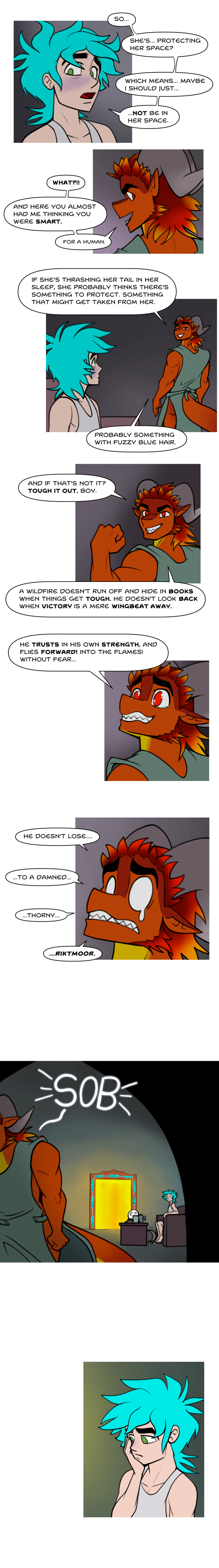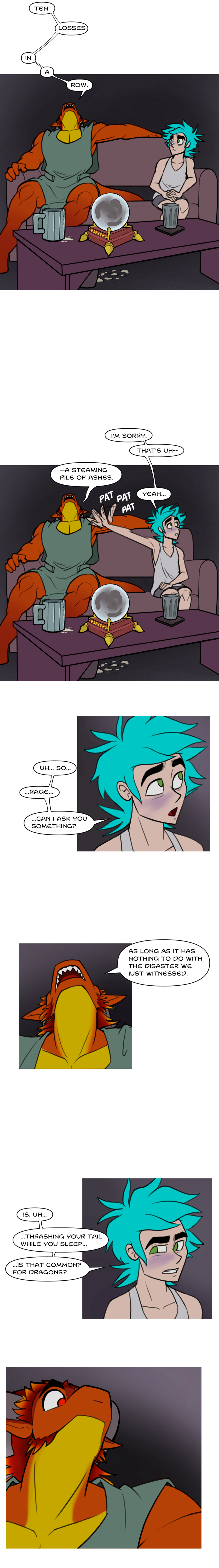 >Physical bodies also require Aether, like air. The body metabolizes it into mana. To most parts of the world, this means very little. And in some places, like Elias' village, the flow of Aether is so thin, people living there grow up mana deficient. Which doesn't mean they can't live perfectly healthy lives. But you'll never see a mage come out of this town, that's for sure. Not that humans have the potential to be very powerful anyway, their Aether metabolism is quite bad compared to an elf's, or... a Dragons. Dragon physiology is particularly Aether greedy. So, these hot springs are extremely rejuvenating, and energizing for them.