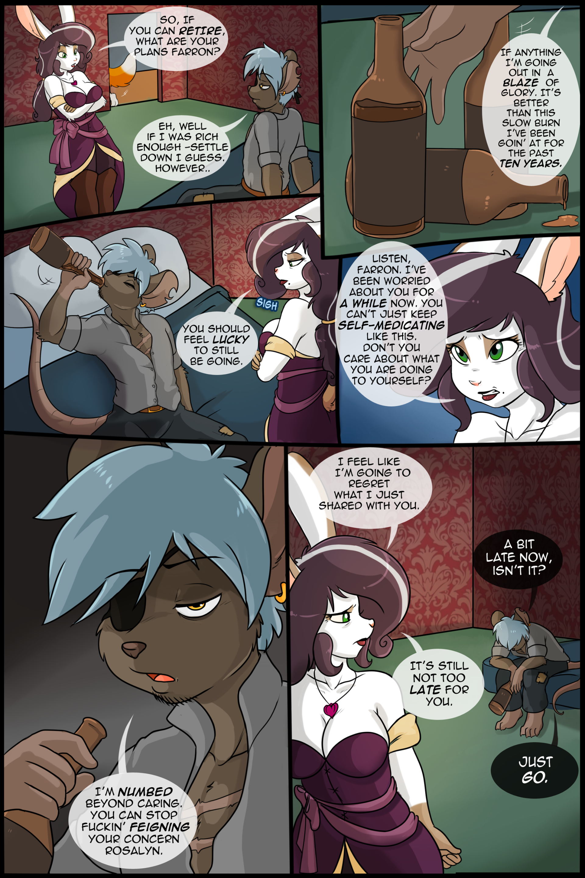 UQ has a problem where Skidd & Phuufy tried early on to add similarly porny fanservice on the side, but the porn ended up being more popular than the story because the story felt generic and they hadn't built the same goodwill that Chalo had built for years and years. (I'd also bet on Chalo having done porn of LL characters in secret before he started releasing it regularly for public consumption, Geecku excepted.) If they'd concentrated on building up UQ as a serious story for a while before slowly dipping into the porn/fanservice, maybe things would have turned out differently.
