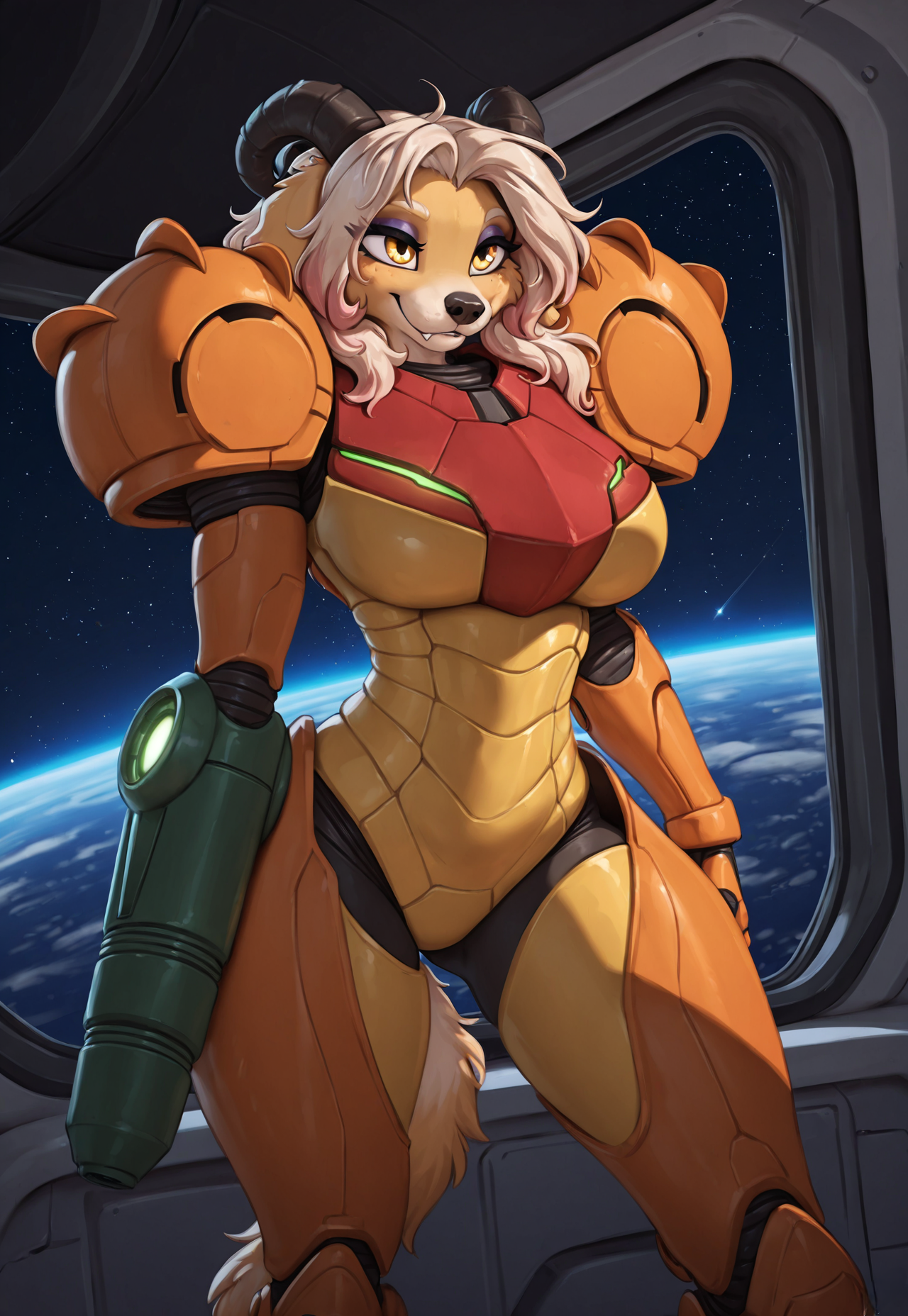 Specifically, for example in this case, a hybrid that is the offspring between a canine (any species or breed) and a sheep, goat, or deer (basically any one mammal species with horns on their head); or is it not at that point yet without it looking like a Cronenberg monster?