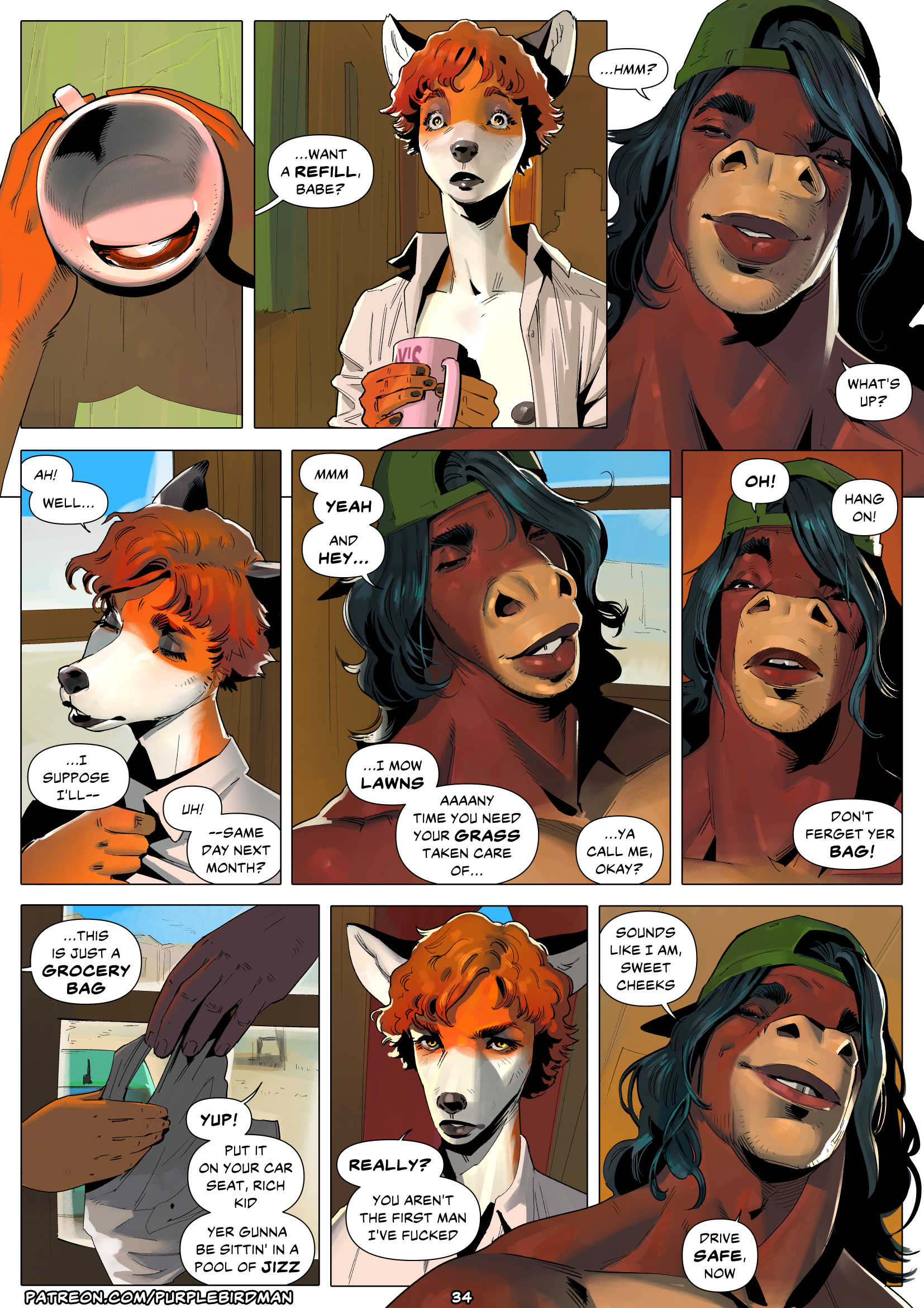 A lot of furry faces are actually pretty horrific, if you stop to really look at them, to be honest. I like these. Inimitable in style and kind of realistic, even if, again, they're ridiculous furries. Maybe it's an acquired taste since this might be the third time I've seen a comic from this artist and the first time was shocking.