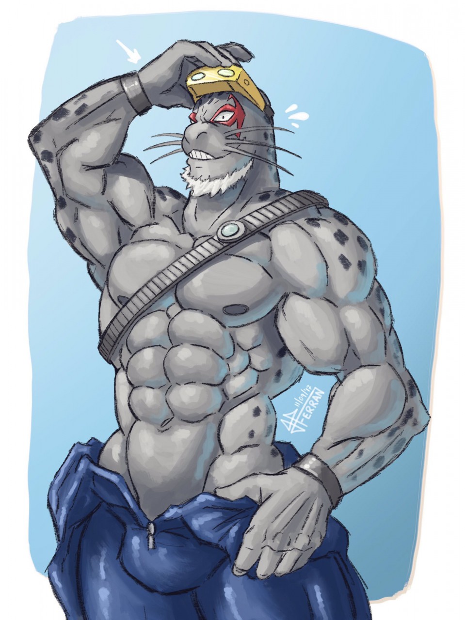 This is a great grown-man character. Nothing bishonen or cutie-boy about him. The big bald dome and the beard drive it home wonderfully. And for me this portrait gives Selkie the best playful-but-still-full-grown-man feeling.