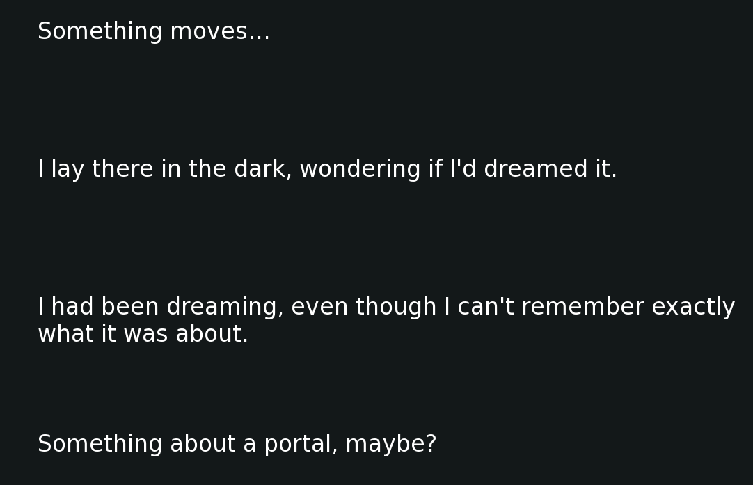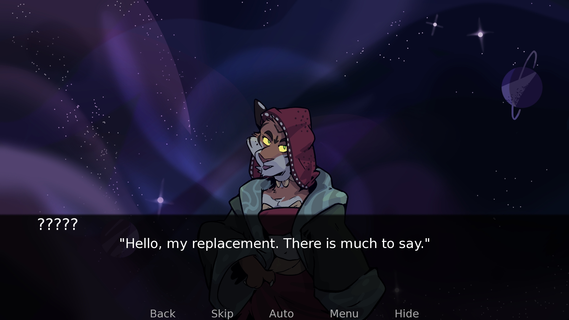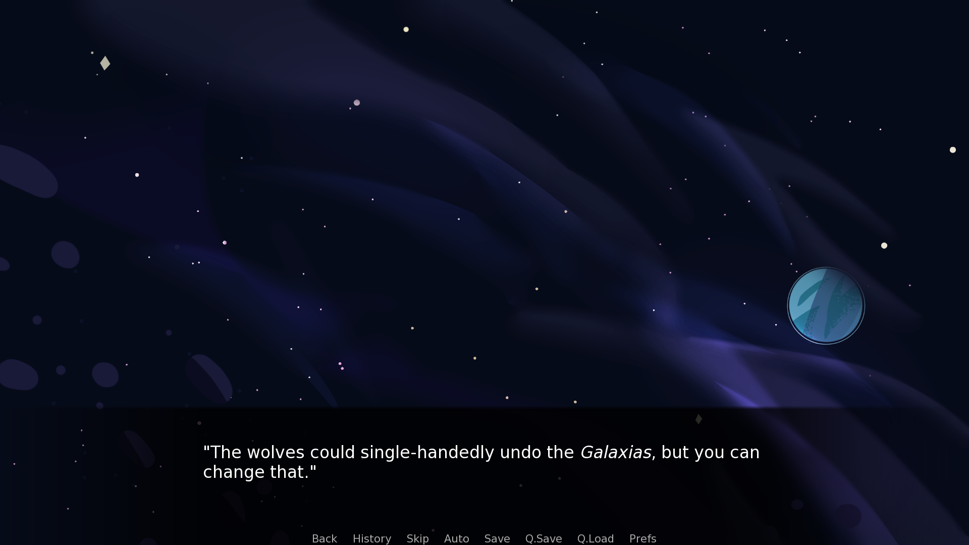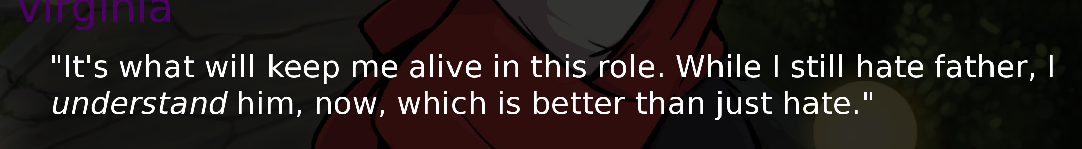 This brings me to another topic that has been brought up quite a bit since the start of this VN: decisions. They're a hallmark of visual novels, and as you might have been able to tell with my work, including with Echo, I don't utilize them very often, mostly because I dislike meaningless decisions that don't affect the story much. I prefer going along for the ride, and only making choices when they matter (instead of stressing over ones that actually don't). Adastra, specifically the character Amicus, has a very linear story, and aside from the ending, it won't branch off much. If, however, you guys enjoy flavor text (with decisions that don't have a huge impact), I will take that into consideration in the future, maybe even do a poll on that.