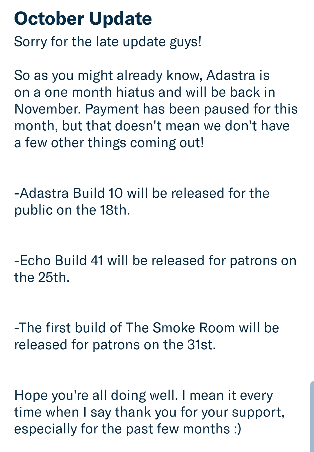 There is a little more new content in this update compared to the patron build, so if you find any typos or errors, please do let us know either in the comments, or the Dis cord server! And let me once again say thank you for all the support. It's really has been an incredible ride over the past half year.