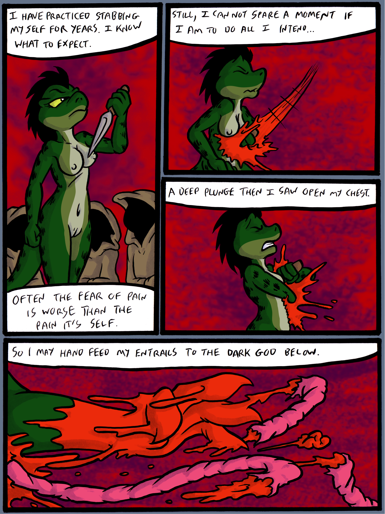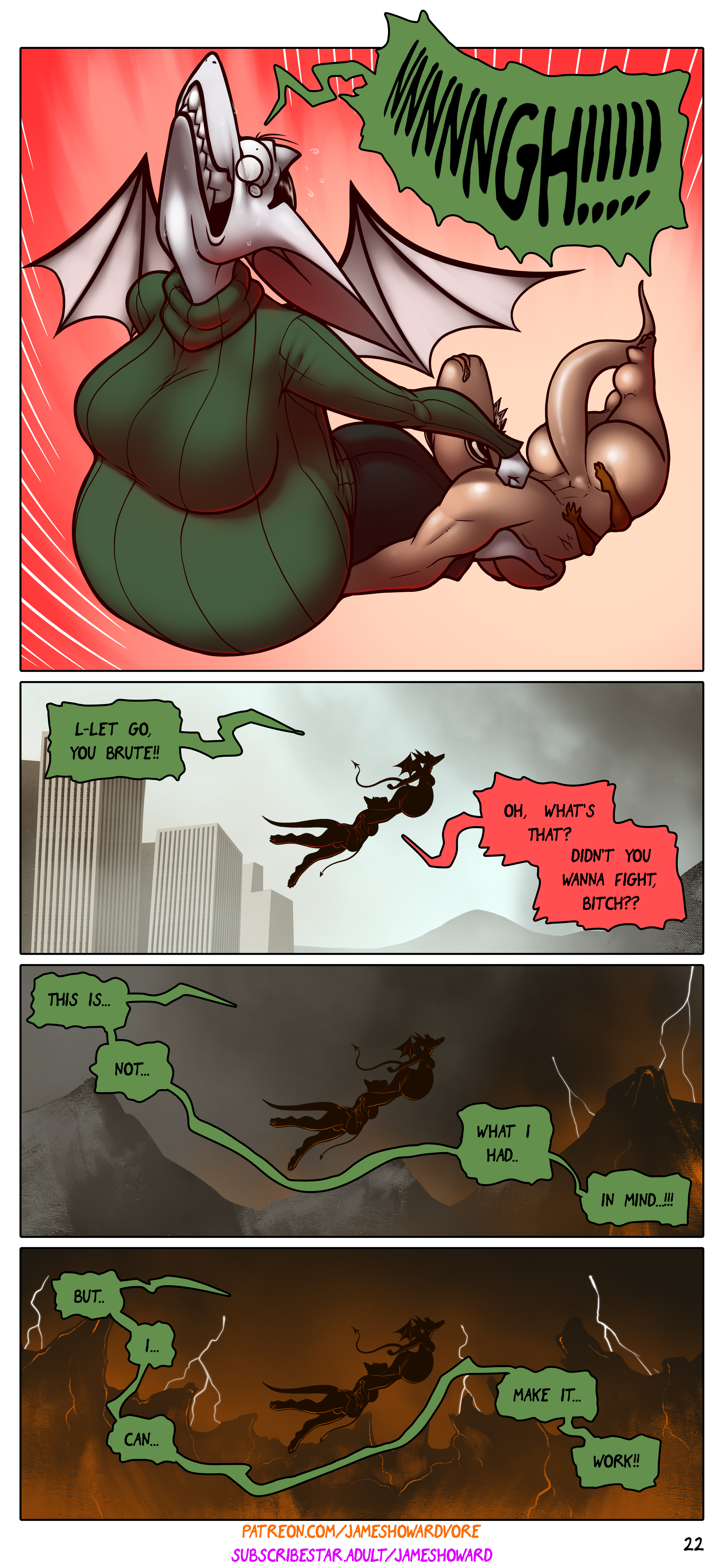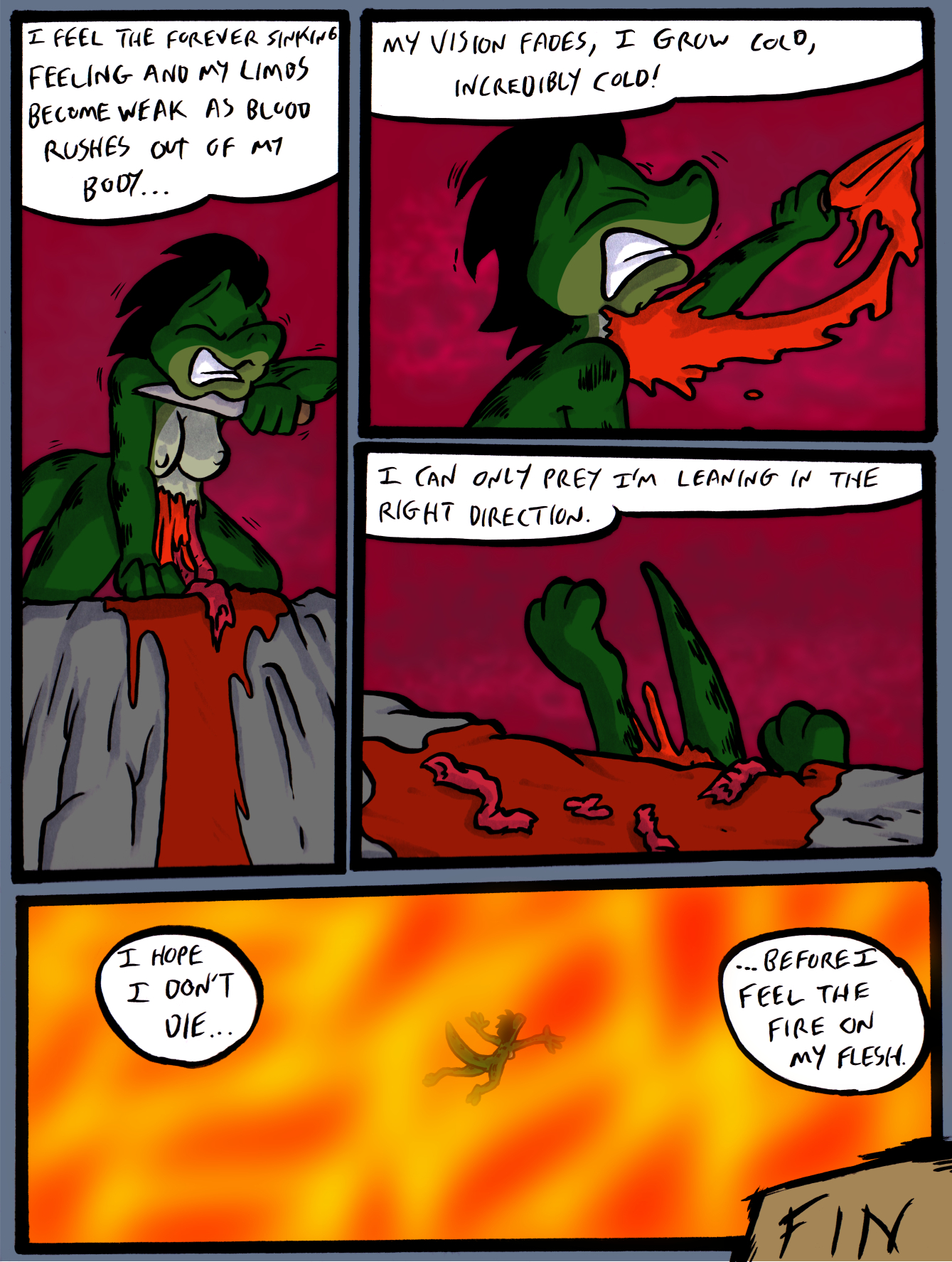 then she lets out a massive fiery fart as she hits the lava. FIN.