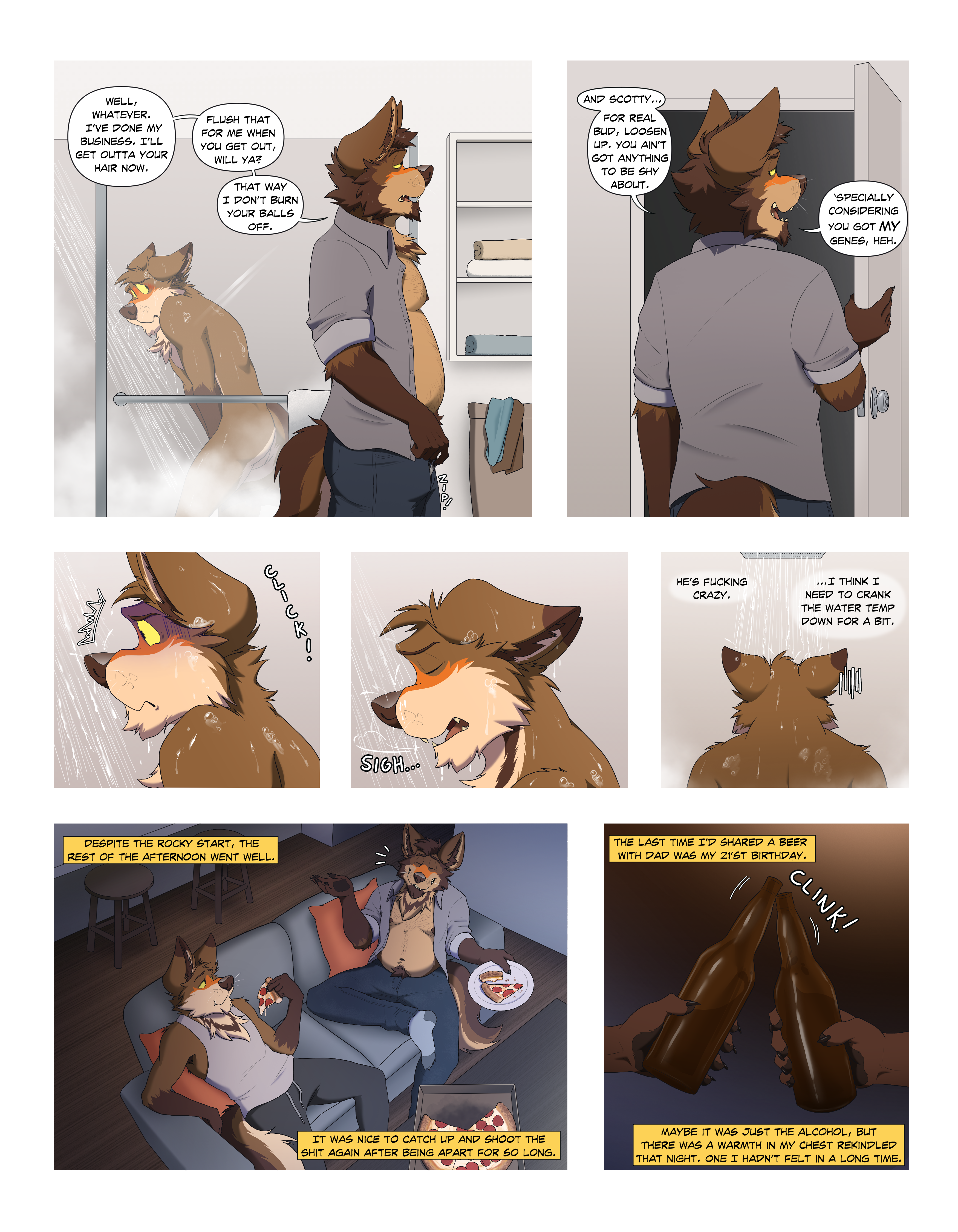 It's going in line with the plot of these stories. andrews dad is still on the fence on if he wants to go all the way, with him. so they're taking it slow. noct doesn't want to get in trouble or get caught, so a BJ is all they're capable of doing right now, in the locker room. we've seen enough of Aaron's art by now to know he's definitely not scared of sex XD