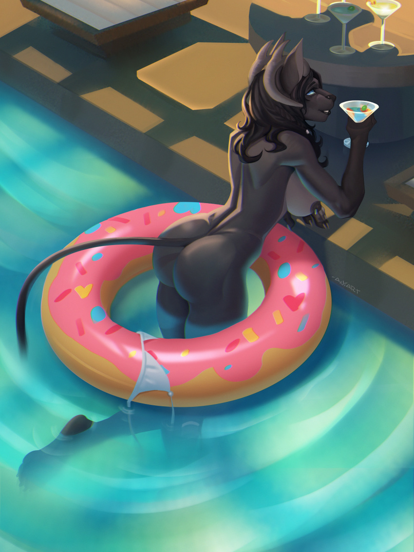 It was very similar to this one, I want to say the character was either "Dawn" from askderpycat1 or an early xenocoyote pic, because their was a a love heart on her flank, and two tone black hair with some blue. White or grey fur. She was solo, nude, the "camera" was focused on her ass, in a pool, on a (now old) android