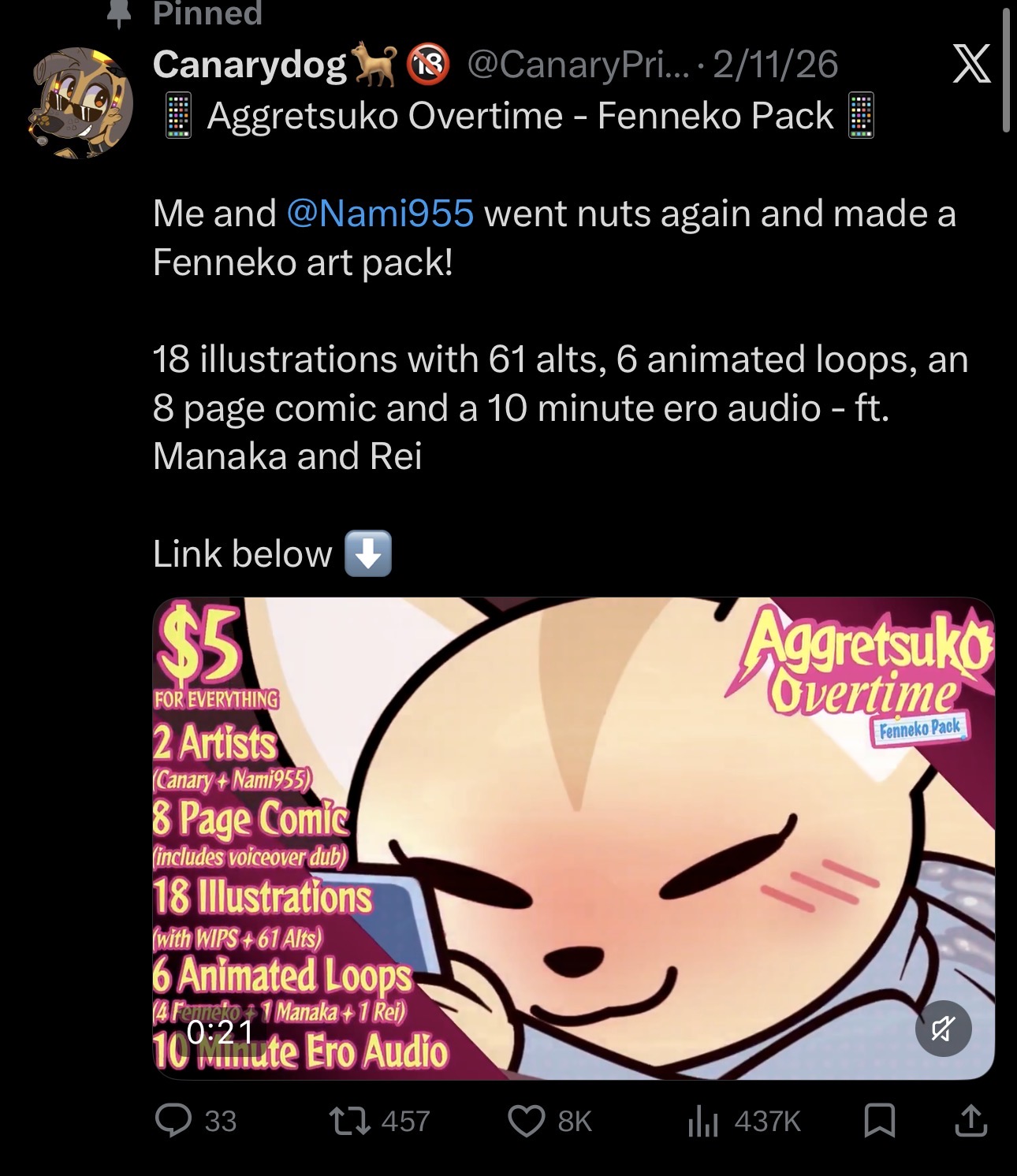 Canary primary - Aggretsuko overtime art pack Furrynomous 2026/03/15 23:31:08 No.2552700    [Reply]